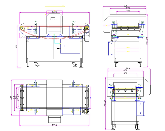 其他定制规格板链输送带金检机实例图: