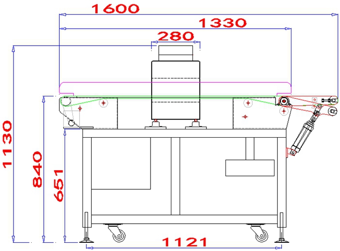 7.检测到金属异物,输送带前端部分下沉分流排除异常产品!