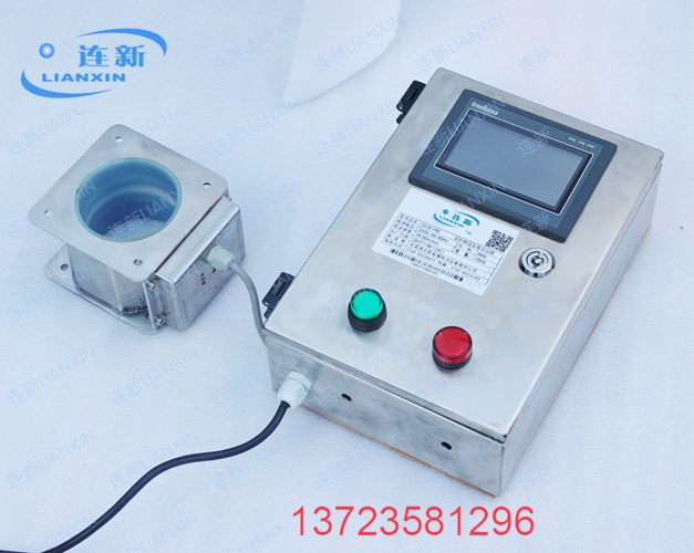 原料从料斗或送料器自由下落进入金属分离器,如果没有金属杂质,原料会直接通过金属分离器流向下端的出料口。如果检测器检测到原料中含有金属,那么控制器立刻启动分离板将金属物和部分原料一起导向侧面的排料口,然后分流板迅速恢复至正常的位置,分流板速度可调,金属分离器的检测精度也可根据生产需要调节,最小可检测并分离出Φ 0.2mm的金属颗粒。